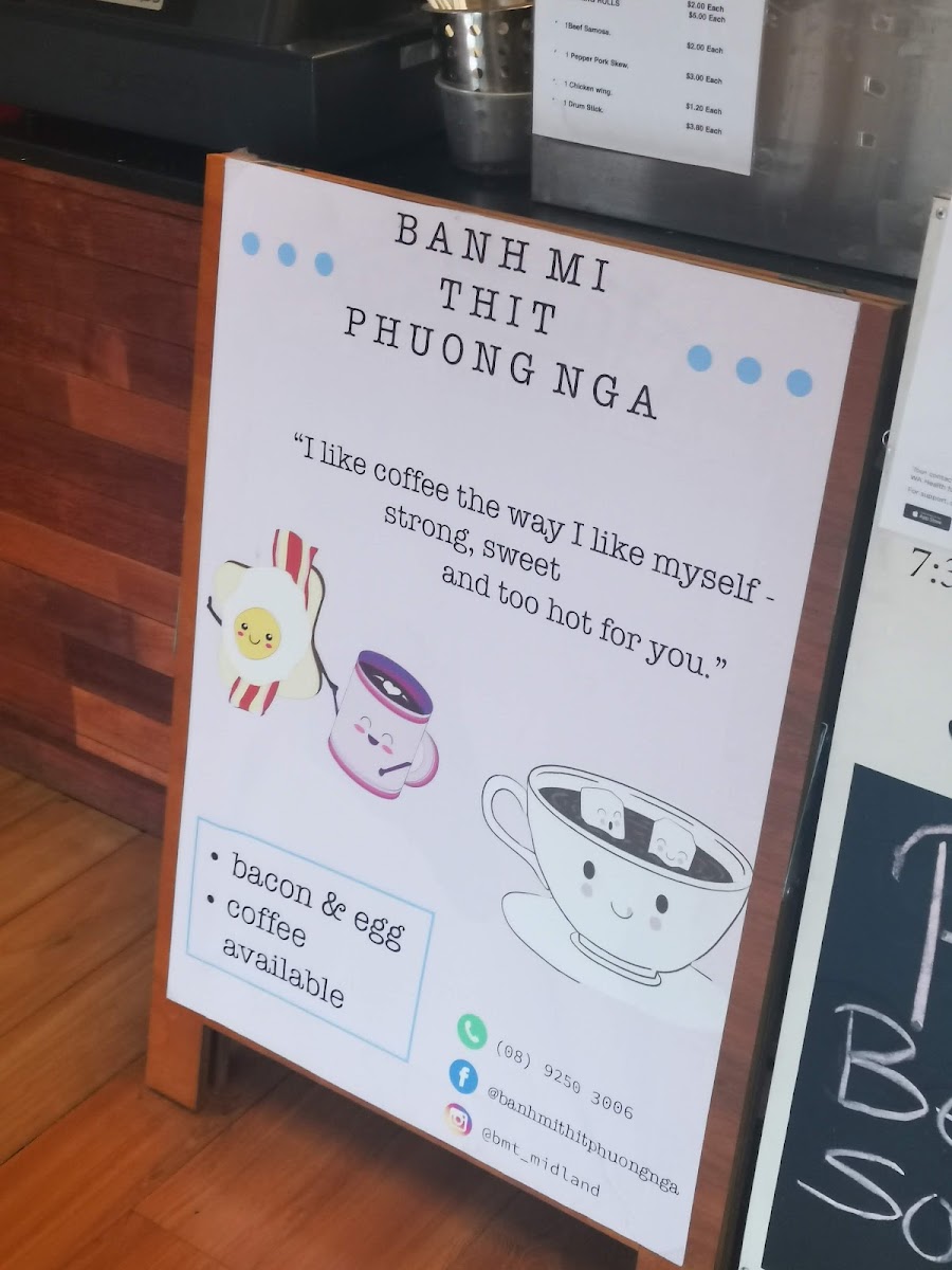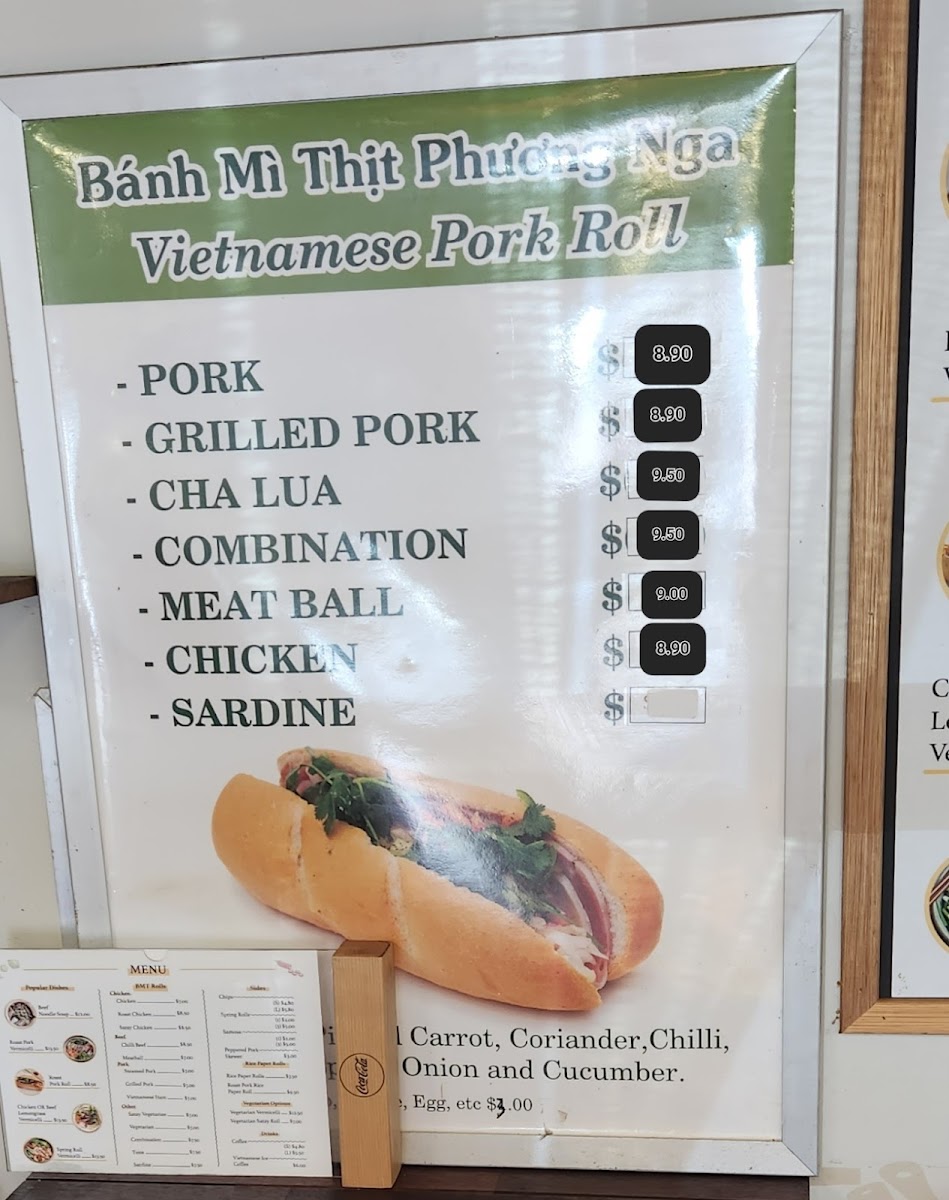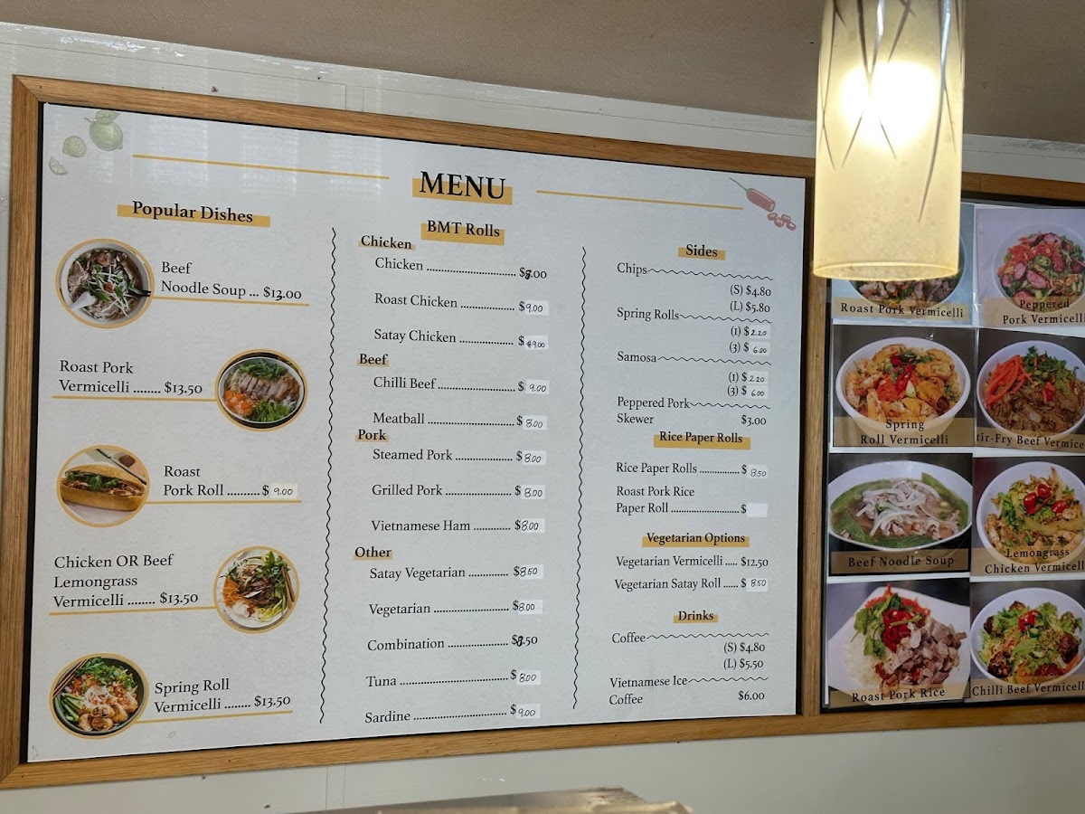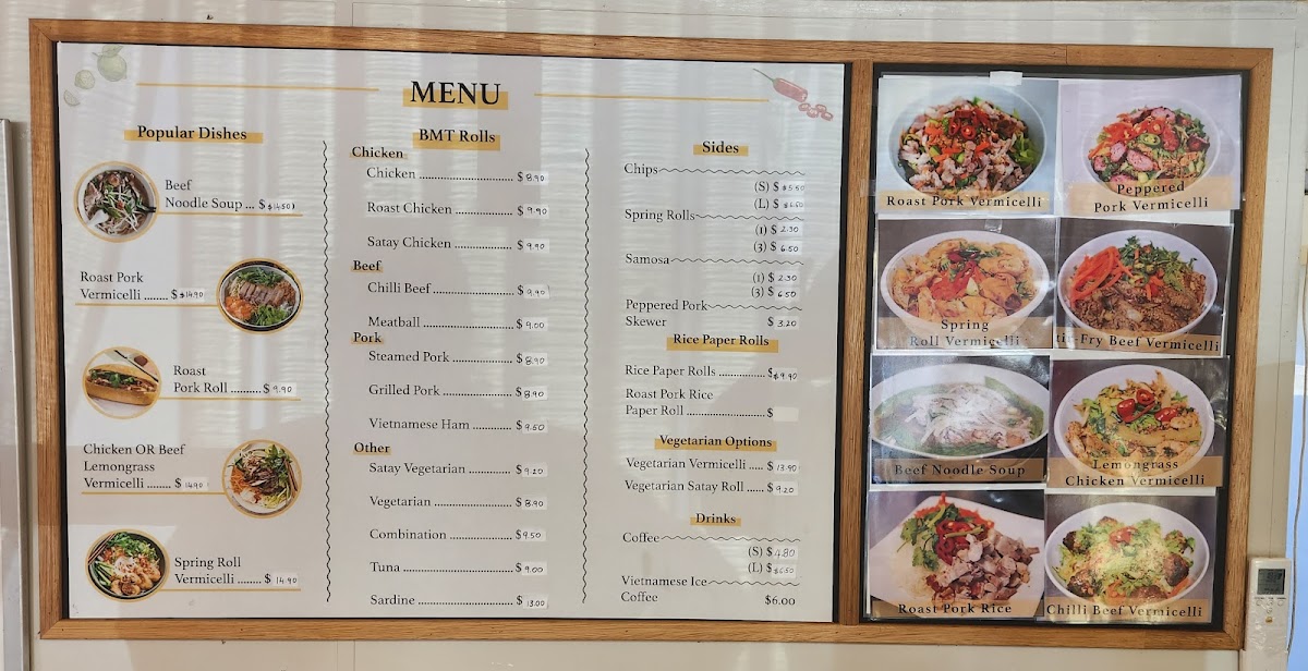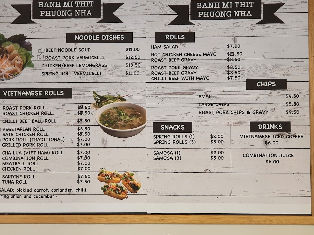 Bánh Mì Thịt Phương Nga, located at 7/2 The Crescent, Midland WA 6056, offers a menu packed with delicious and authentic Vietnamese flavors. The highlight of their offerings are the Beef Noodle Soup and Roast Pork Vermicelli, both of which deliver traditional Vietnamese comfort food at its best. If you're in the mood for something light but equally satisfying, try the Spring Roll Vermicelli, a refreshing and flavorful option.